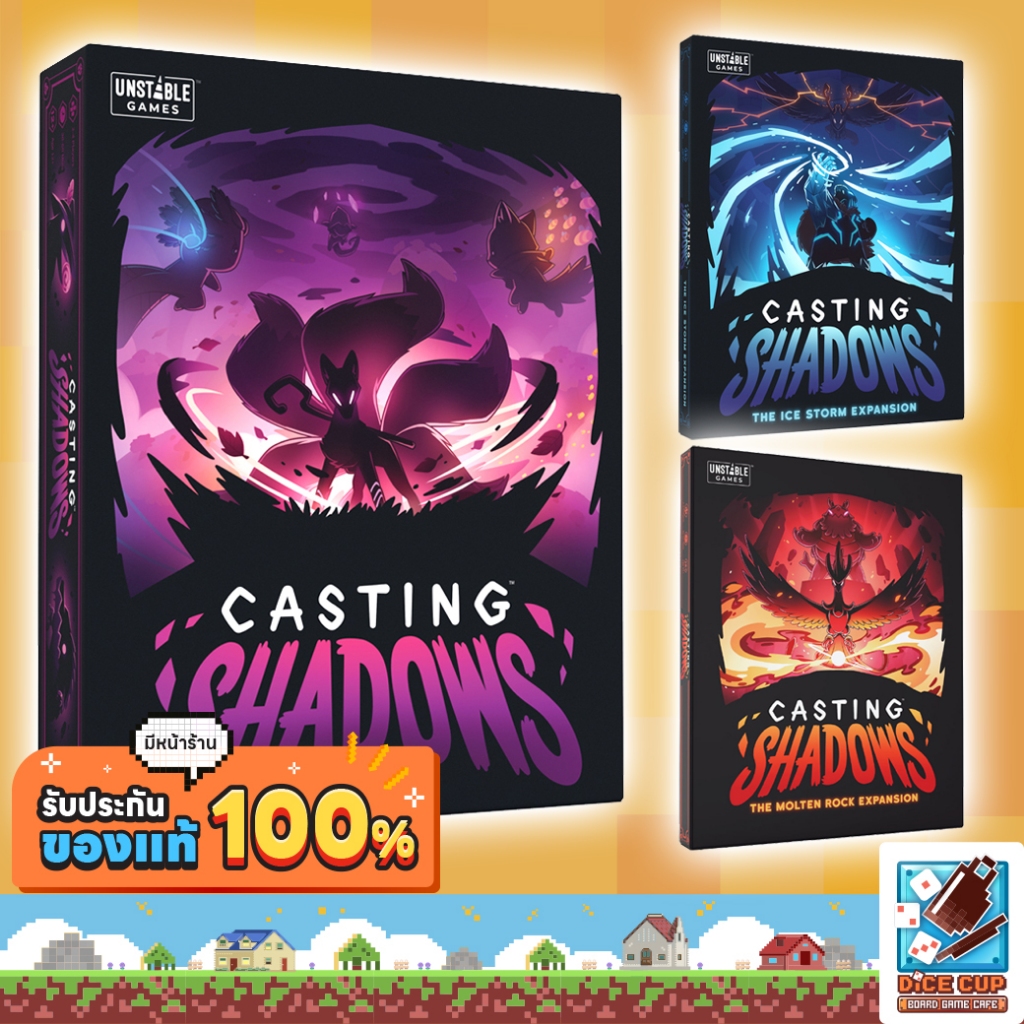 . The Kickstarter Exclusive Edition comes with: - Casting Shadows Base Game in Kickstarter Exclusive Edition Box with alternate art, a magnetic box upgrade, and a removable sleeve with the standard edition art The last player standing after this supernatural showdown wins.